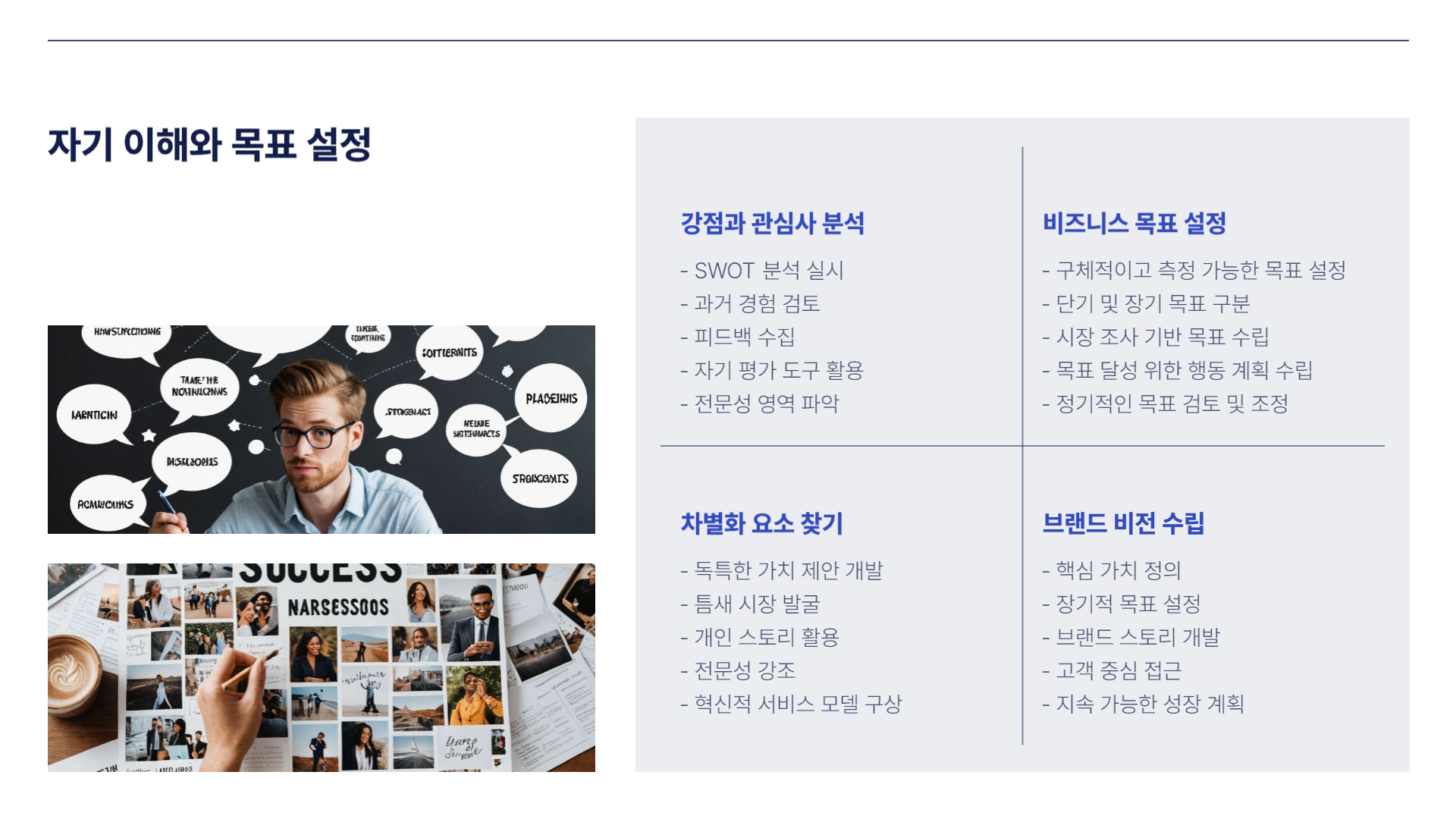 | 차별화 | 시장 내 독창적인 포지션 설정 |